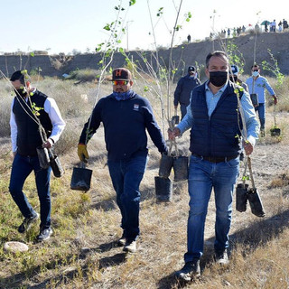 José Carrillo, Director de dicha dependencia, explicó que este espacio natural forma parte de un proyecto de largo plazo para beneficio de las futuras generaciones, al que se le han venido haciendo mejoras a través del tiempo. Los 53 álamos plantados en esta ocasión fueron donados por la organización “Caminantes del Desierto”, como parte de su activismo a favor de la comunidad, abundó.